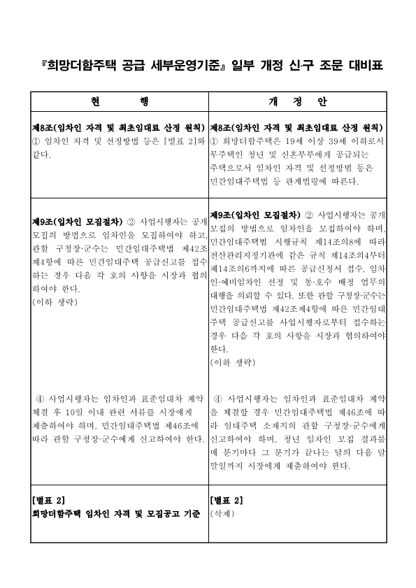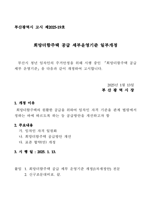 부산희망더함주택 공급 세부운영기준 일부개정 사항